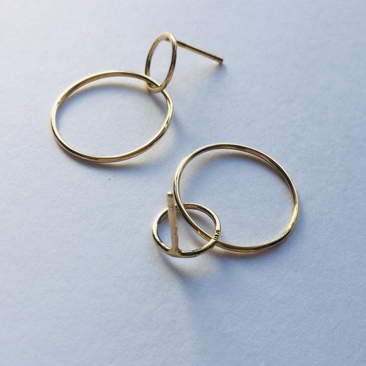 Sterling Silver925 Circular Arc and Ball Chain Earring For Pierced Ear