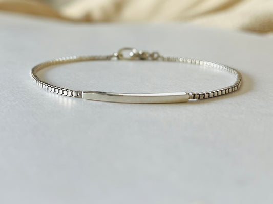 Sterling Silver925 Bar and Venetian Chain Bracelet For Men & Women [ Unisex ]