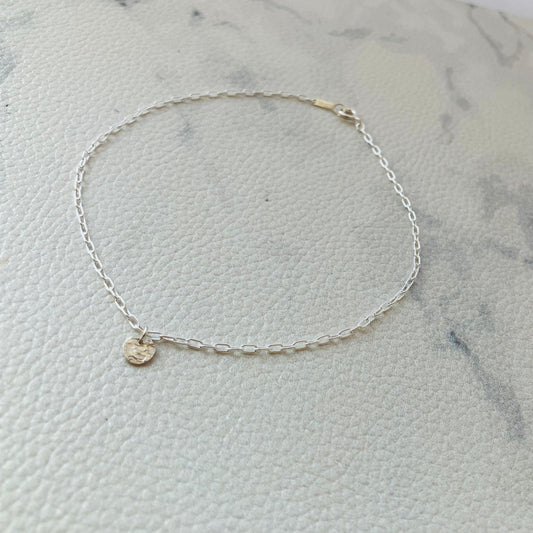 Hammered 18K Yellow Gold Tiny Disc / Round Charm & 10K Yellow Gold Chain Anklet