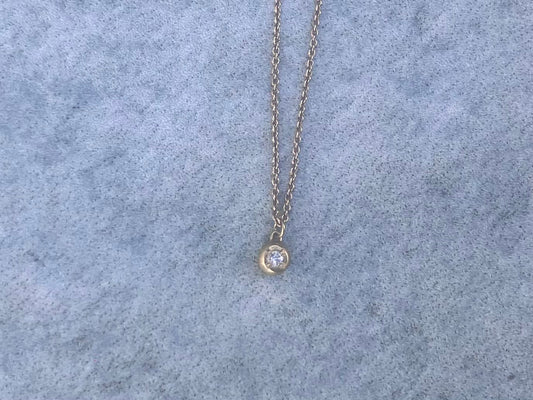 Diamond Inside Flattened 18K Gold Ball Charm & 10K Gold Chain Necklace For Women