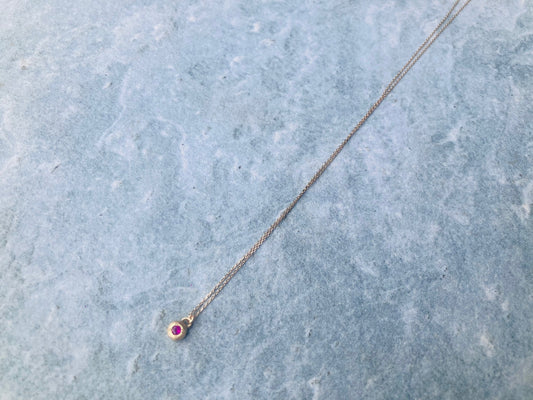 Ruby Raw Gem / Birthstone Inside Flattened 18K Gold Ball Charm & 10K Gold Chain Necklace For Women
