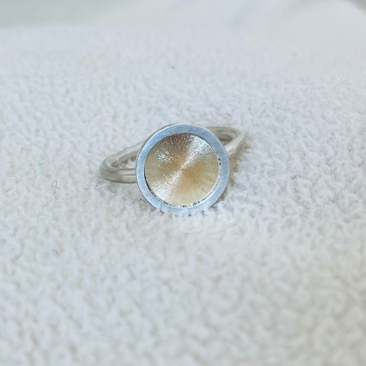 Combination Matte Sterling Silver925 & 10K Gold Round / Symbol of The Sun Ring For Women [ Statement Jewelry ]