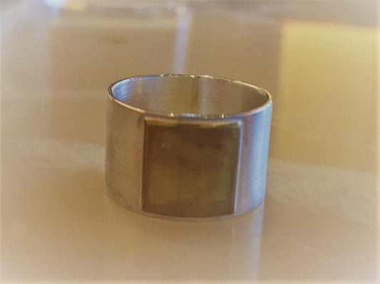 【バイカラージュエリー】K10ゴールド・真鍮・スクエア・ワイド・シルバー・コンビネーション・リング・バンド [ユニセックス]