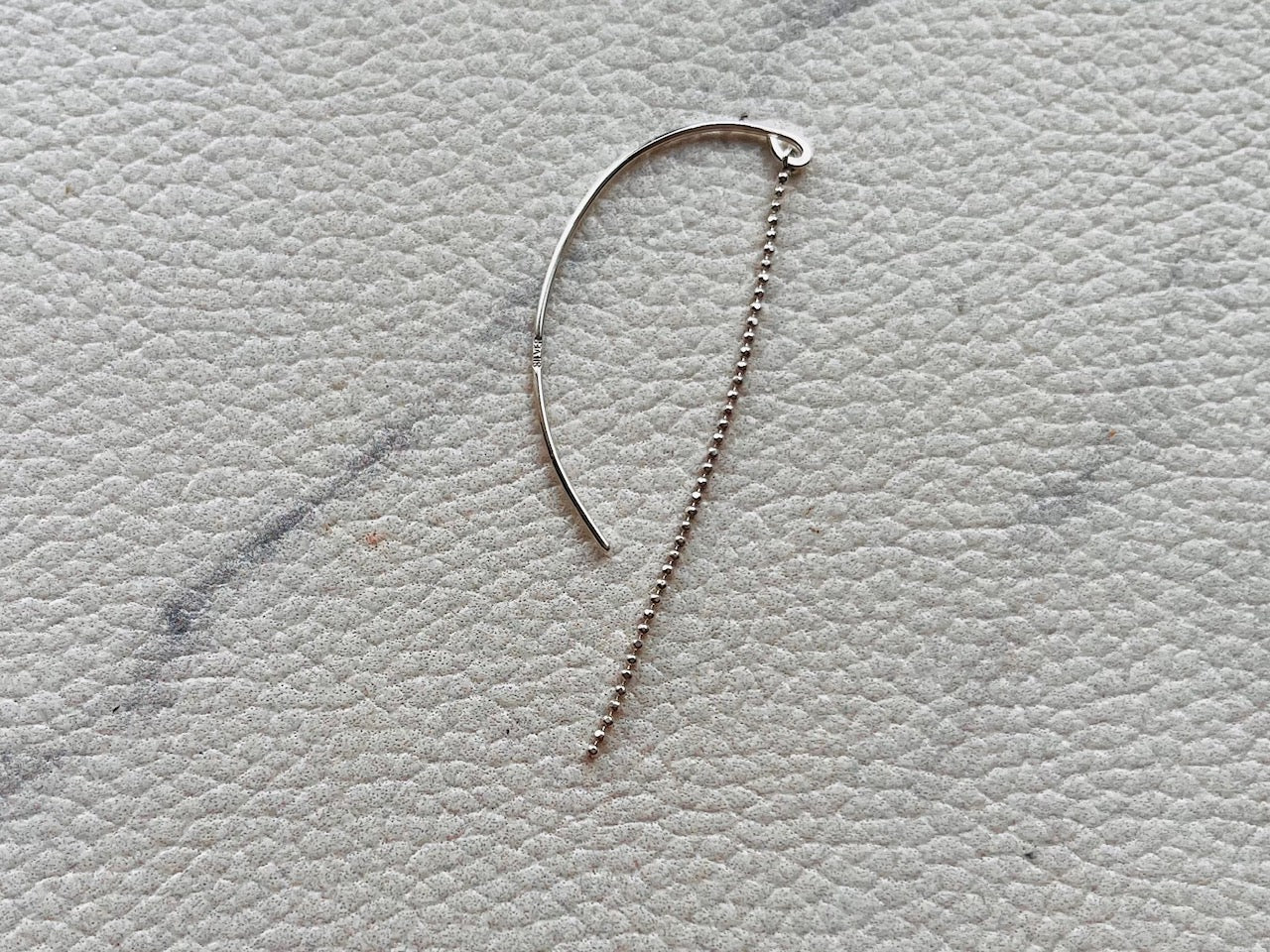 仕様:すべてシルバーで制作。弧部分は0.8㎜のシルバー丸線。ボールチェーンの長さは5㎝になります。