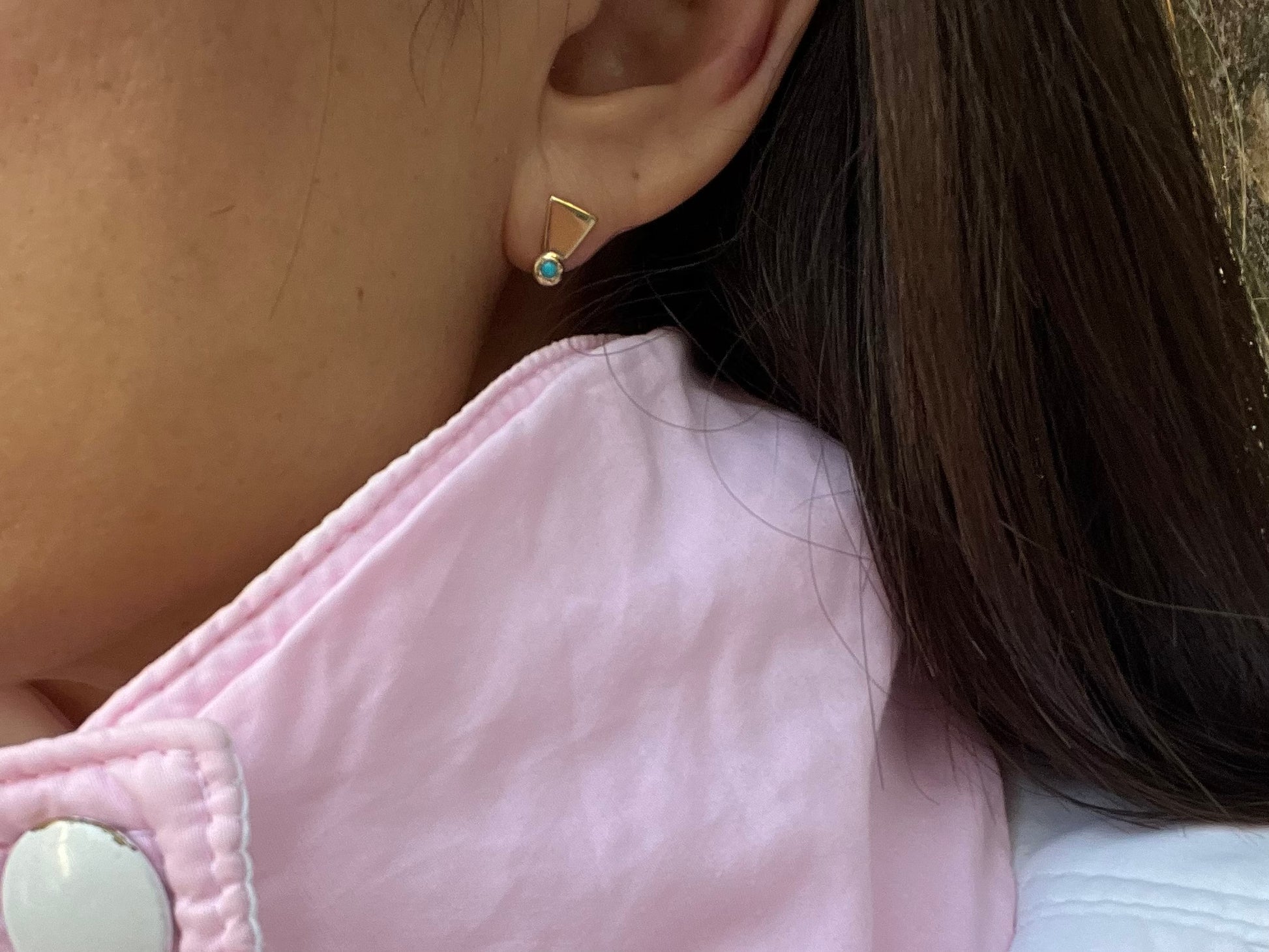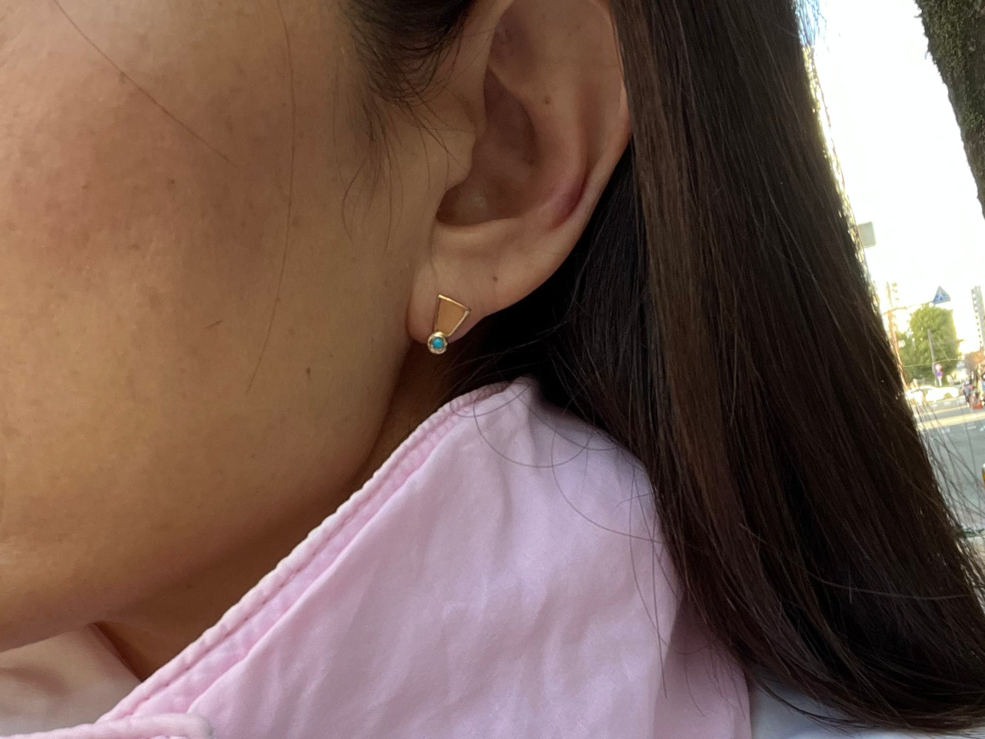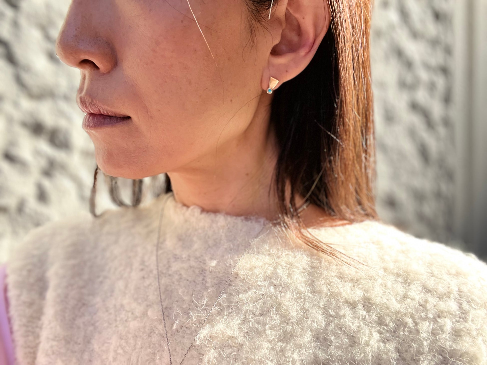 K10ゴールドとターコイズ“A Happy Exclamation”ピアス・12種類の天然石・誕生石より選べるピアス
